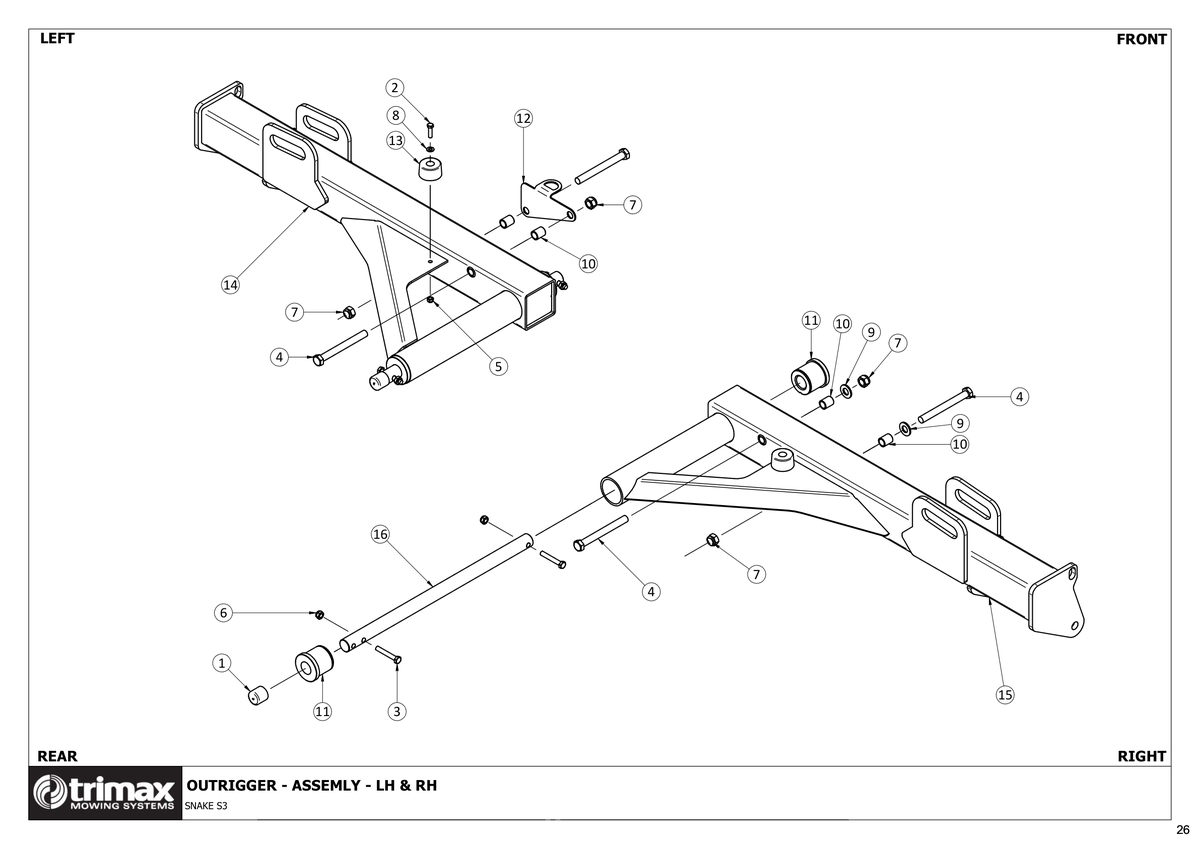 14 Outrigger - LH - Inc. Bushes - Snake S3 [510-000-096] Outrigger - LH - Inc. Bushes - Snake S3 510-000-096